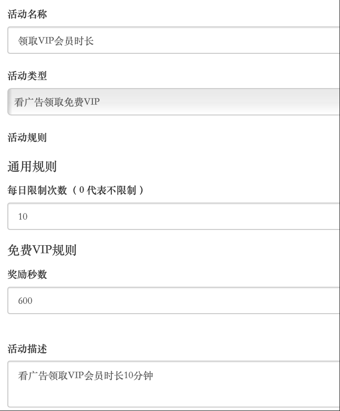 - 不配置广告或者活动次数用完只会导致“观看广告解锁”按钮的消失,不影响会员购买按钮