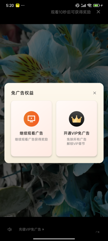 在“可关闭广告秒数”内点击关闭按钮,无法关闭视频,会出现二次确认弹窗,引导用户购买VIP或观看广告