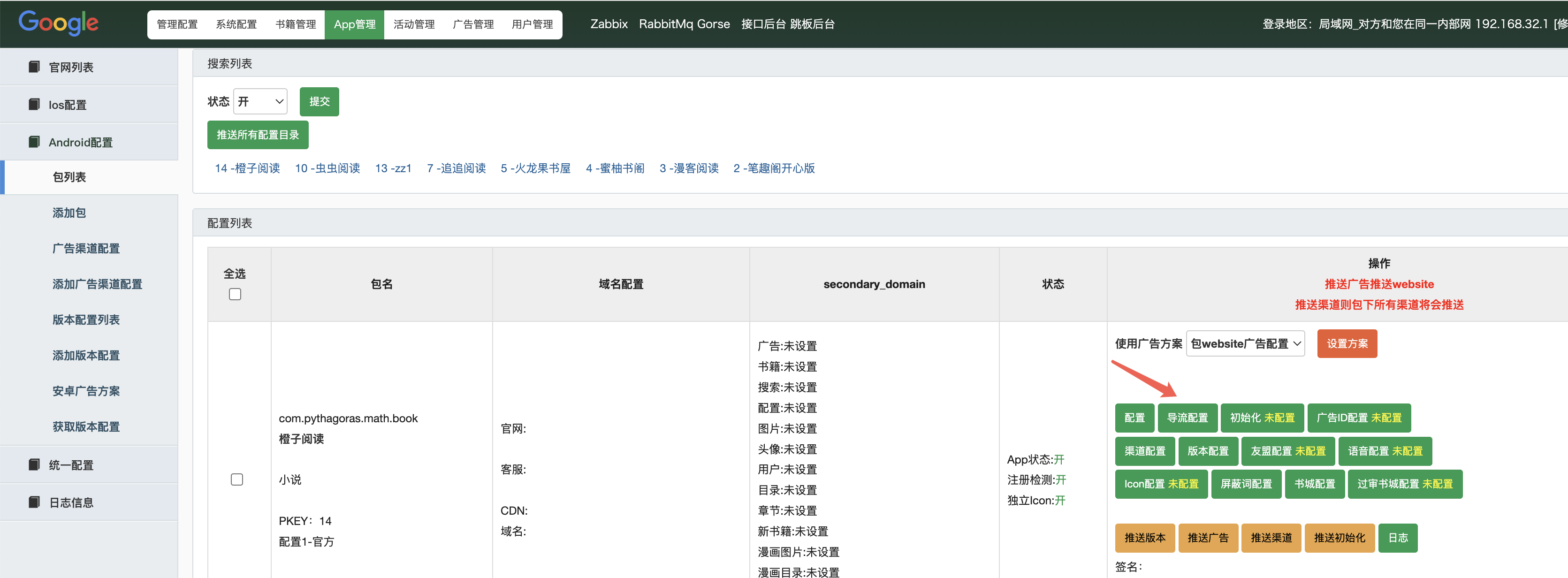 app管理-Android配置-包列表-导流配置